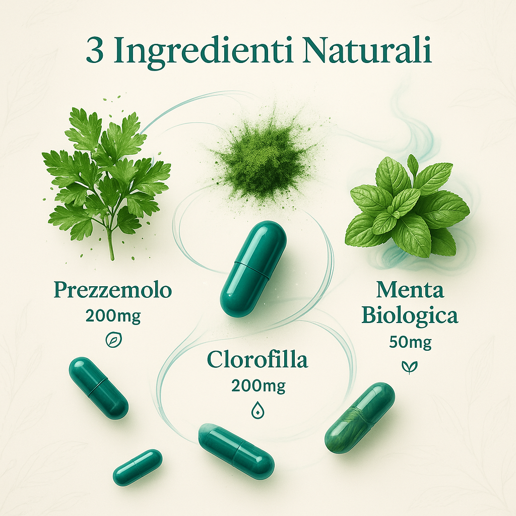 Una formula concentrata di 450mg di estratti naturali, selezionati per la loro efficacia scientificamente provata contro l'alitosi.