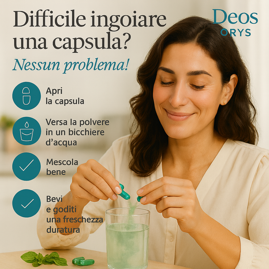 Una sola capsula fornisce alito fresco e un corpo inodore per tutta la giornata.
